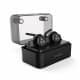 Intelligent Charging Box Offer Power Design: Up to 120 minutes continuous talk or music time within full charged. Come with intelligent charging box with high capacity lithium battery provides 4-6 times charges for continuous use. See through plastic material get know of the charge status. Charging box provides fast charge. Compact size, easy to carry for outside or travel. Long press till Red light on to turn on bluetooth hadphone.